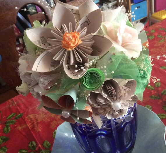 Mint And Coral Paper Flower Bouquet Color Choice Available